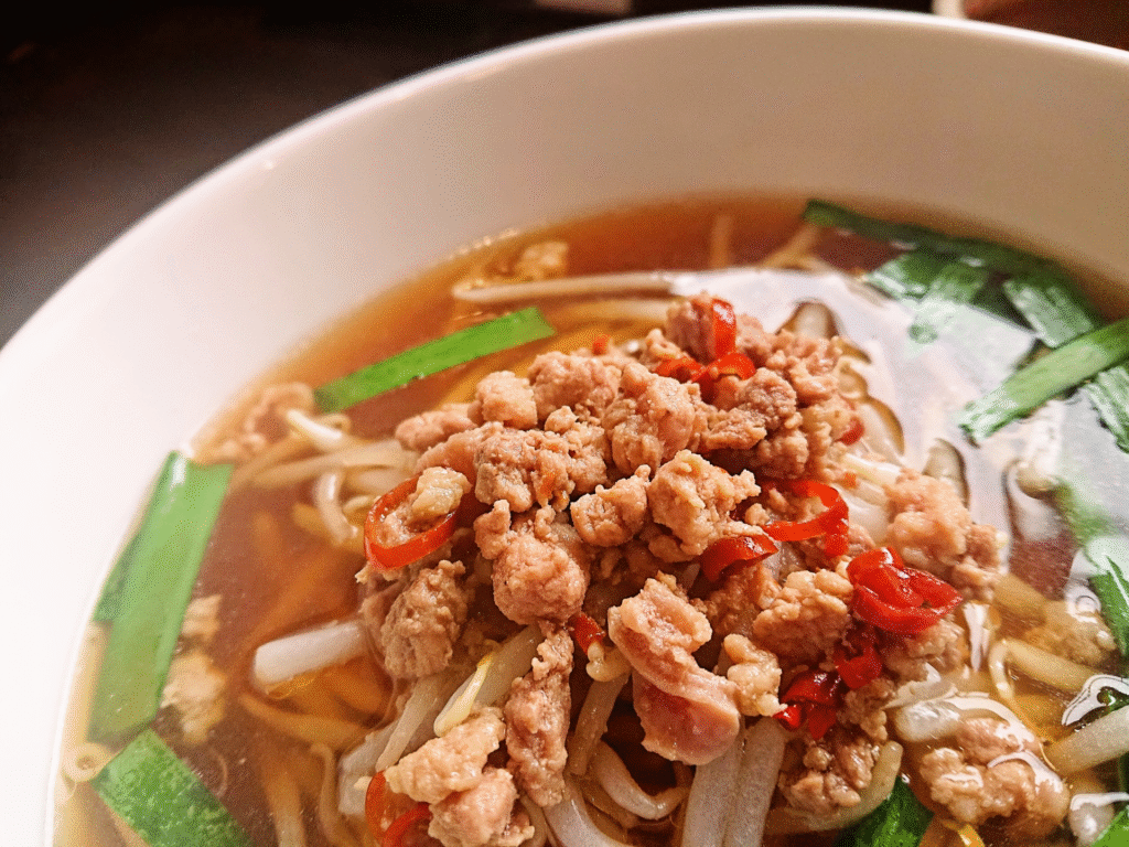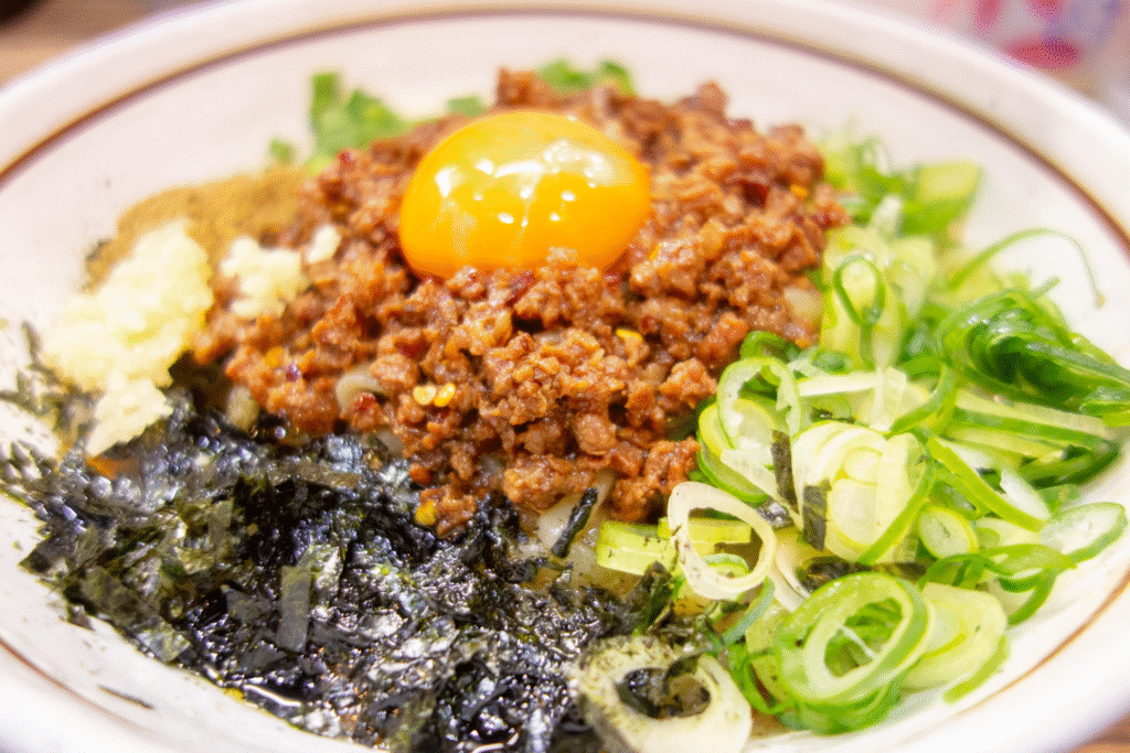 - 特徴: 台湾ミンチ(唐辛子とニンニクを効かせた醤油味のピリ辛ミンチ)を極太麺に乗せた、汁無し麺。